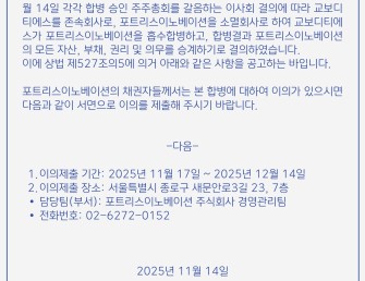 합병에 따른 채권자 이의제출 공고