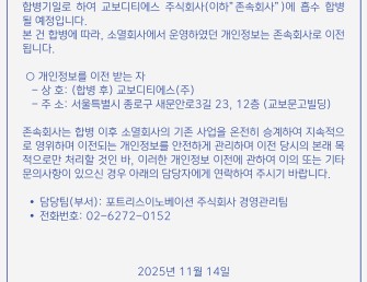 합병에 따른 개인정보 이전 공고