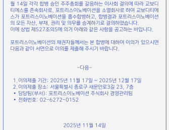 합병에 따른 채권자 이의제출 공고